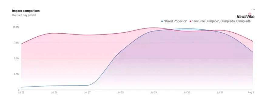 ”Dintre sportivii români, numele lui David Popovici a fost cel mai des menționat în articolele și postările de pe Facebook din această perioadă, referitoare la Olimpiadă. Au avut un impact aproape egal cu cel al mențiunilor despre întregul eveniment sportiv. Acest lucru sugerează că o mare parte a articolelor și postărilor de pe Facebook despre Jocurile Olimpice au inclus și referințe la David Popovici”, conform site-ului.