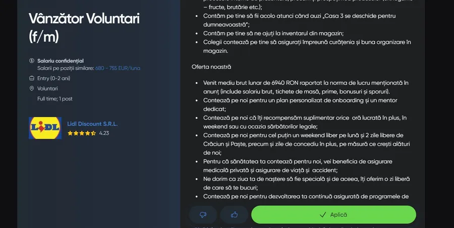 LIDL, retailerul internațional cunoscut pentru oferta sa variată de produse și prețuri competitive, a anunțat recent oportunitatea de angajare pentru un post de vânzător în cadrul magazinului său din Voluntari. Această poziție a stârnit interesul multor căutători de locuri de muncă, datorită pachetului salarial atractiv și a beneficiilor asociate.
