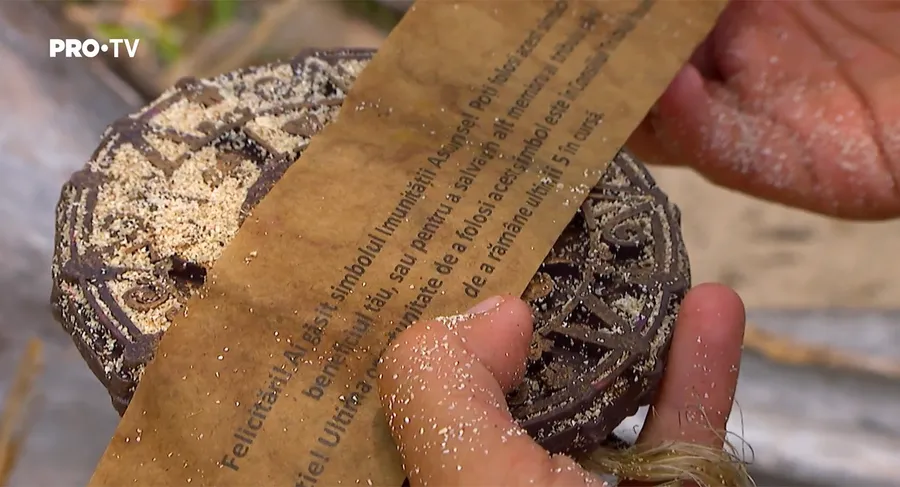 „Felicitări! Ai găsit simbolul imunității ascunse. Poți folosi acest simbol sacru în beneficiul tău sau pentru a salva un alt membru al tribului tău. Atenție! Ultima oportunitate de a folosi acest simbol este în consiliul tribal dinainte de a rămâne ultimii 5 în cursă”.