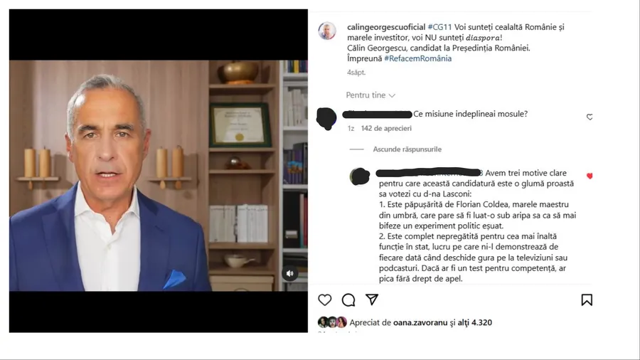 În mod neașteptat, campania sa online a atras sprijinul unor vedete din showbiz-ul românesc. Printre cei care i-au dat „like” postărilor se numără Oana Zăvoranu și Cristina Spătar, două personalități bine cunoscute în lumea divertismentului. Ambele au apreciat mesaje cheie din campania lui Georgescu.