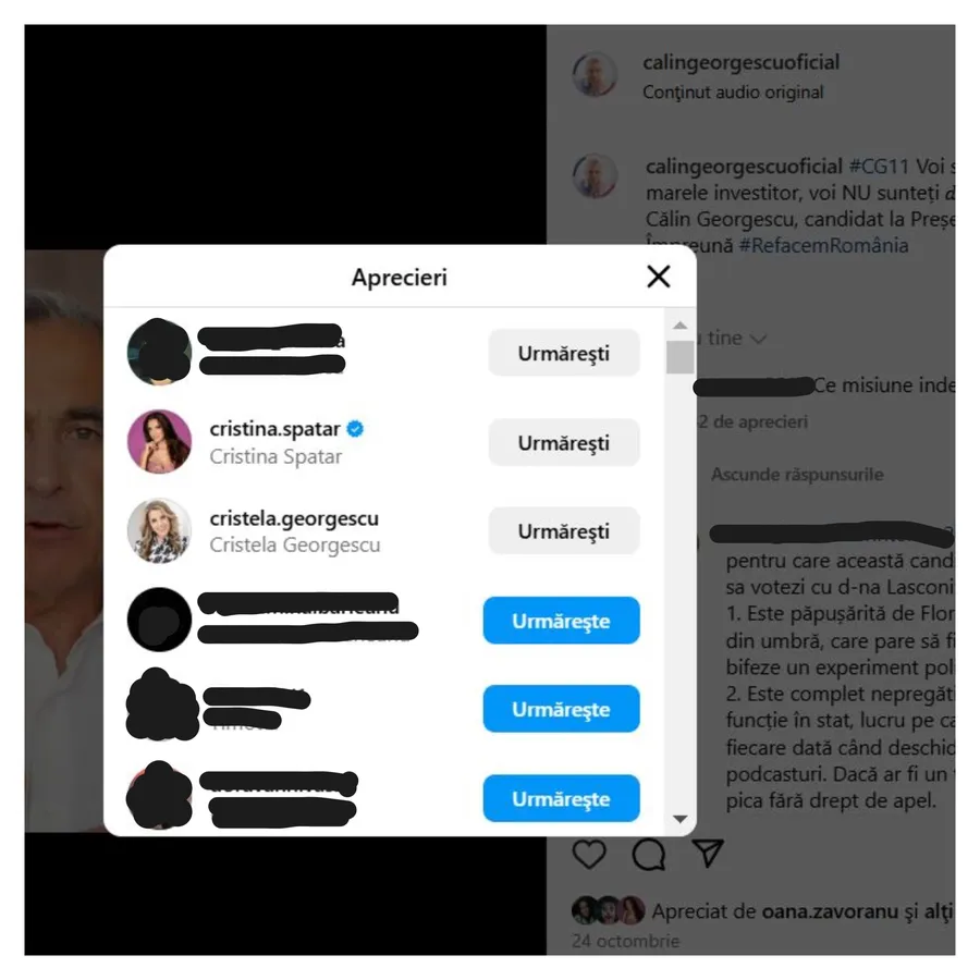 Ce vedete i-au dat like lui Călin Georgescu! L-au susținut pe Instagram, unde și-a făcut campanie