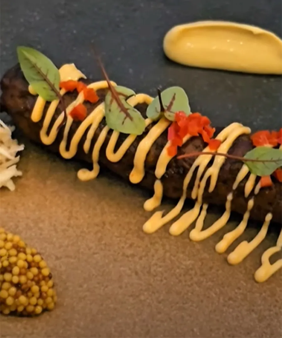 Acești mici premium nu seamănă deloc cu varianta tradițională, populară prin piețe și la grătarele din parc. Carnea provine din Japonia, este maturată la standarde de top (clasa A5, cel mai înalt nivel de calitate), iar prepararea este atent controlată pentru a evidenția gustul natural al ingredientului de bază. Alături de acești mici de lux, clienții primesc garnituri reinterpretate și un muștar artizanal, creat special pentru a completa aroma intensă a cărnii.