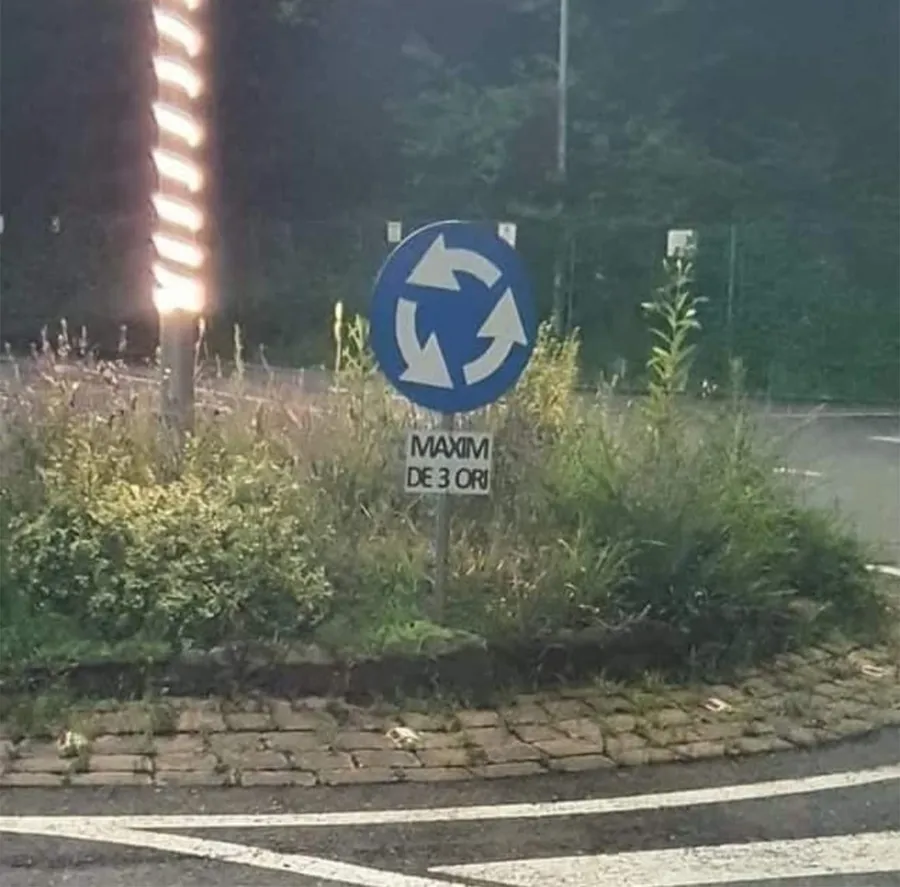 „Maxim de 3 ori, am zis! Aparent, în acest sens giratoriu nu ai voie să te învârți mai mult de trei ori, altfel… Dincolo de hazliul situației și de ingeniozitatea legendară a românilor și în materie de indicatoare rutiere, subiectul circulației prin girații este unul foarte serios și complicat care generează multă confuzie, fiind o enigmă totală pentru numeroși șoferi autohtoni.