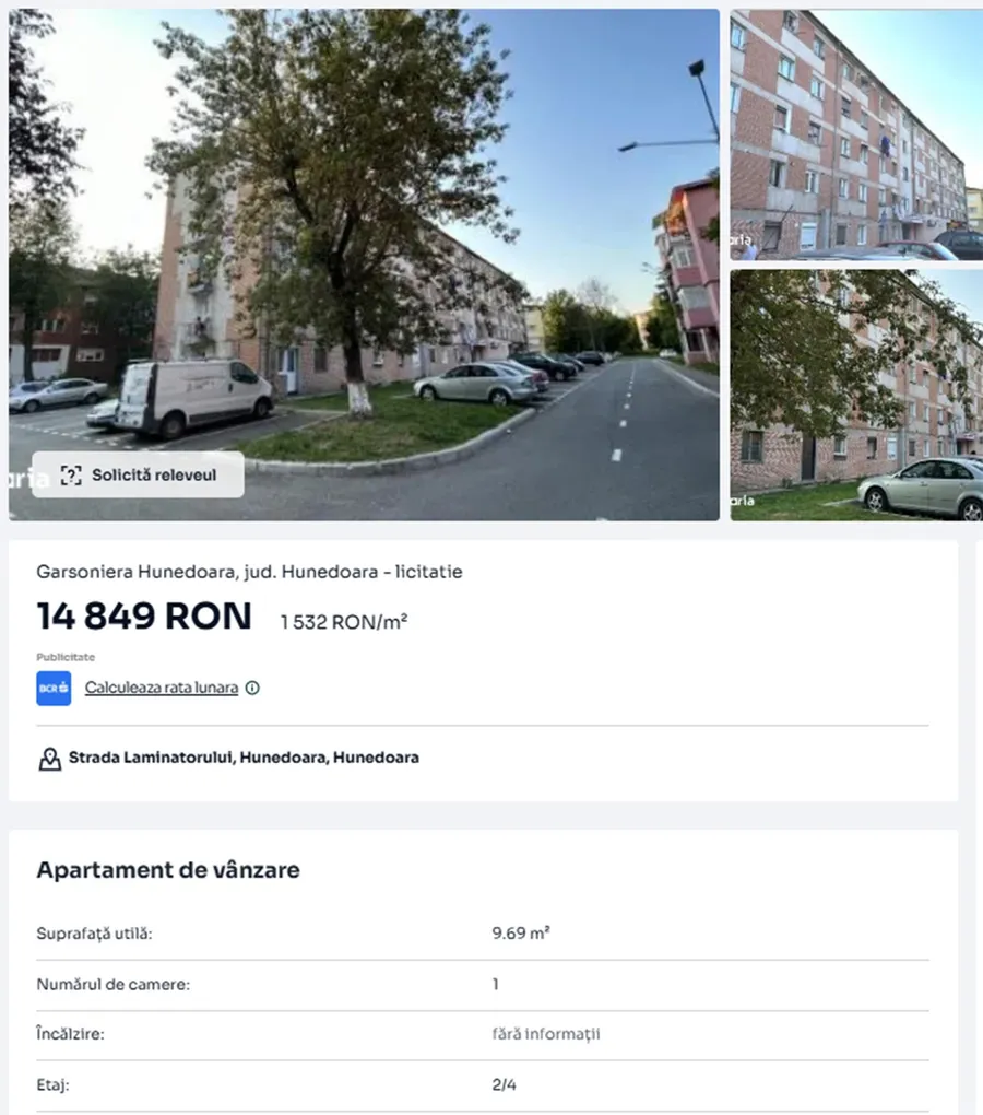 O garsonieră de aproape 10 metri pătrați este scoasă la licitație în Hunedoara la un preț care nu are cum să nu îți trezească interesul, 14.849 de roni.