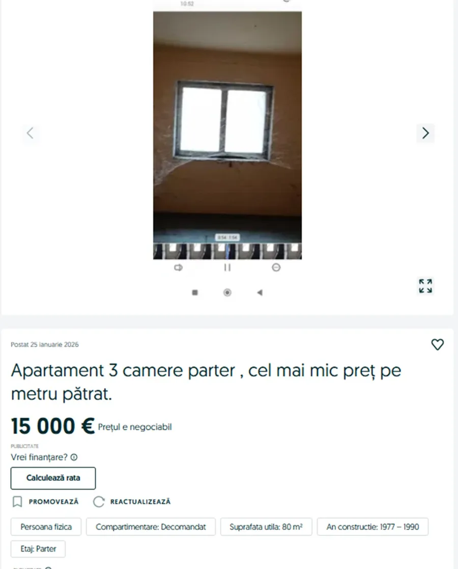Prețul este de 15.000 de euro, negociabil, ceea ce face această ofertă una extrem de atractivă pe piața actuală. O alegere inspirată pentru cei care doresc să investească inteligent sau să achiziționeze o locuință la un cost minim. Prețul redus le permite să aloce un buget suplimentar pentru renovare sau modernizare, iar asta poate duce la creșterea valorii imobilului într-un timp relativ scurt.