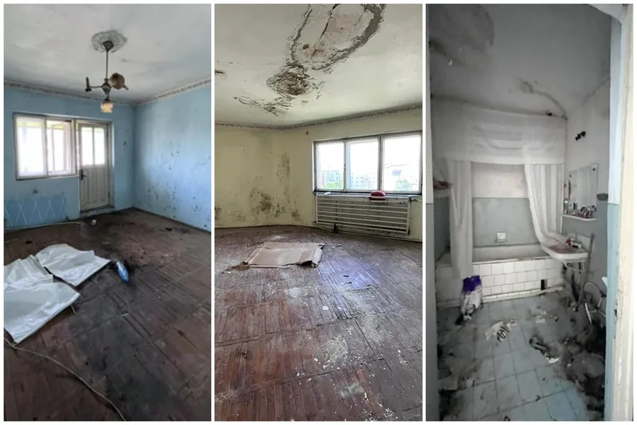 Fotografiile postate în mediul online cu apartamentul din Vaslui sunt mai mult decât grăitoare. Locuința arată ca după un dezastru. Pereți decojiți, mucegai, instalații sanitare distruse, mizerie cât cuprinde, iar totul pare că stă să se prăbușească în orice secundă. Apartamentul parcă este desprins dintr-un film de groază, însă, cu toate acestea, proprietarul speră să obțină pe el 33.500 de euro. Prețul este negociabil.