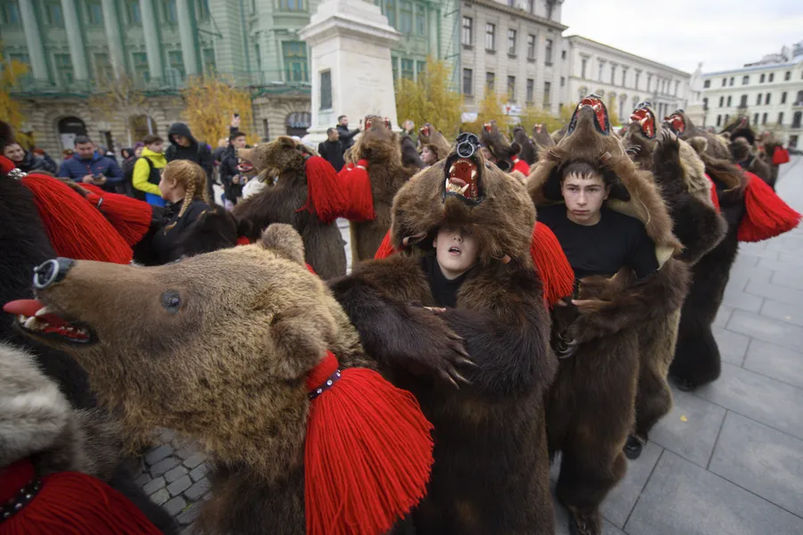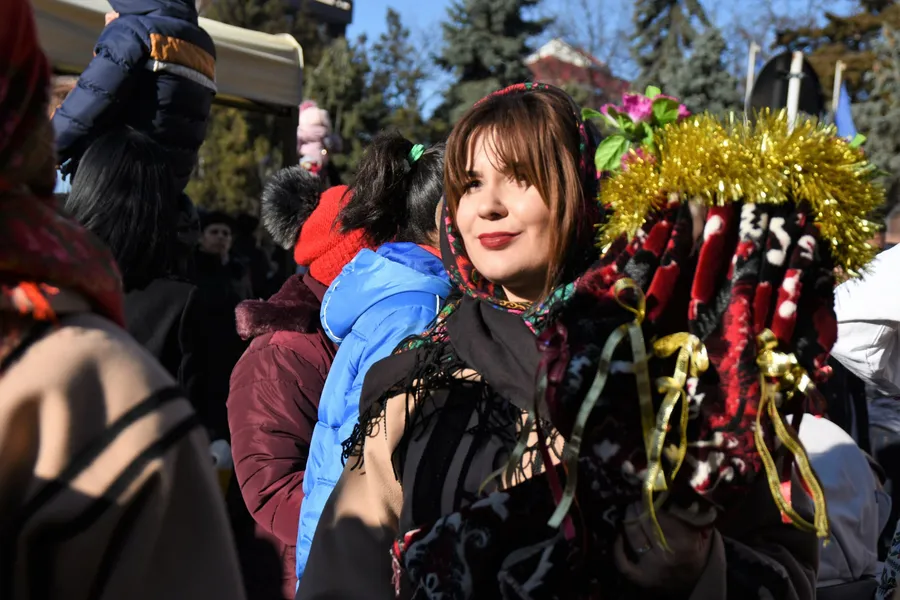 Apoi vine Ursul, probabil cel mai puternic simbol al Moldovei. Flăcăii se îmbracă în blănuri adevărate de urs, cu capul impunător al animalului pe creștet, decorat cu pampoane roșii țesute manual. Dansul ursului, lent și puternic, este o metaforă pentru moarte și renaștere, un ritual păgân adaptat pe parcursul secolelor. Când ursul dansează, mulțimea tace. Sunetul tobelor și mișcarea ritmică a blănii grele creează un moment aproape hipnotic.