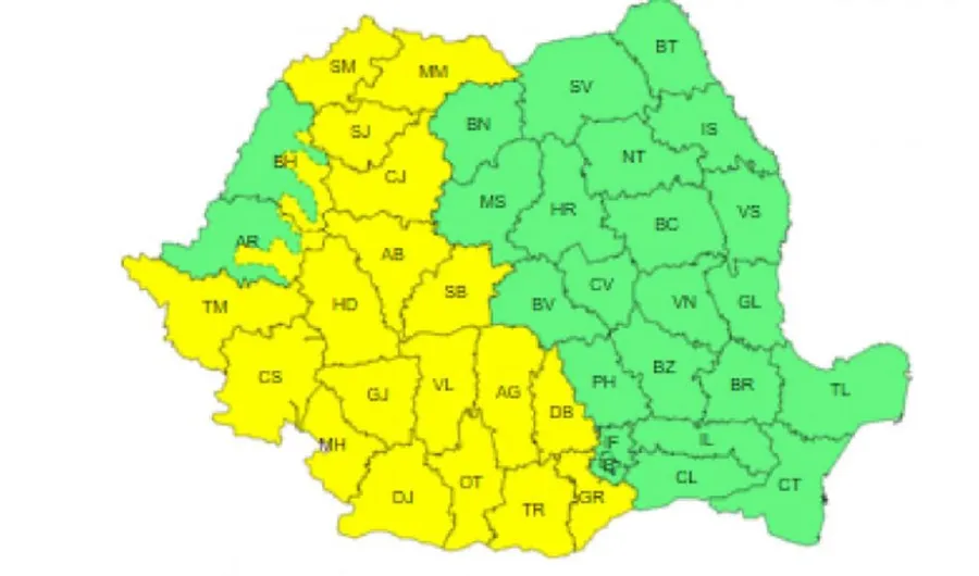 Începând de astăzi, 21 mai, ANM a emis un cod galben de instabilitate atmosferică, ploi torențiale și vijelii – în jumătate din țară. Banat, Oltenia, Marmamureș, vestul Transilvaniei și al Munteniei vor avea loc averse torențiale, descărcări electrice, intensificări ale vântului și izolat grindină. Începând de vineri până duminică stabilitatea atmosferică scade, va mai ploua doar în regiunile de deal și de munte, iar temperaturile cresc până la 30 de grade Celsius în estul și nord-estul țării.