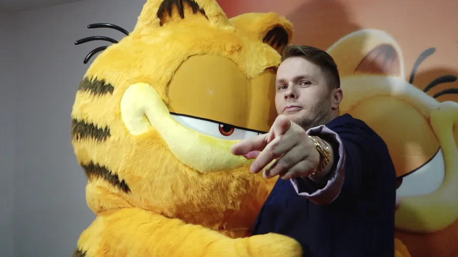 Codin Maticiuc: Ăsta e originalul, ăla din America, pe bune, importat de acolo. Costum și tot, e adus de acolo, plătit, ăla de la Sony. Eu sunt Garfield de Vaslui, cel care a făcut varianta românească.