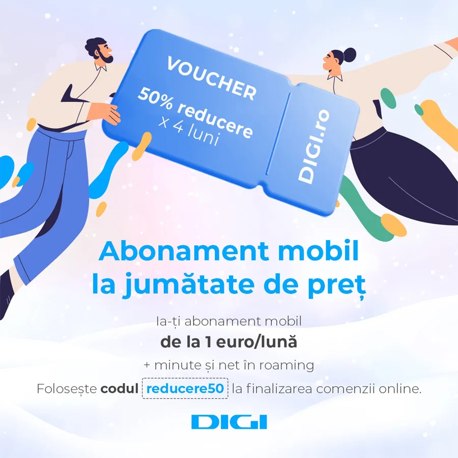Folosește codul reducere50 înainte de finalizarea comenzii online și bucură-te de ofertă”, anunță Digi RCS-RDS România.