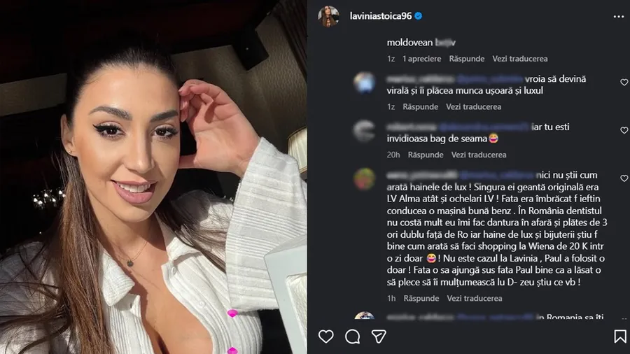 „Nici nu știi cum arată hainele de lux! Singura ei geantă originală era LV Alma, atât, și ochelarii LV! Fata era îmbrăcată foarte ieftin, conducea o mașină bună benz. În România, dentistul nu costă mult, eu îmi fac dantura în afară și plătesc de 3 ori dublu față de România. Iar haine de lux și bijuterii… știu foarte bine cum arată să faci shopping la Wiena de 20K într-o zi doar 😂! Nu este cazul Laviniei, Paul a folosit-o doar! Fata o să ajungă sus, fata… Paul, bine că a lăsat-o să plece, să îi mulțumească lu Dumnezeu, știu ce vorbesc!”, sunt doar câteva comentarii la postarea Laviniei.