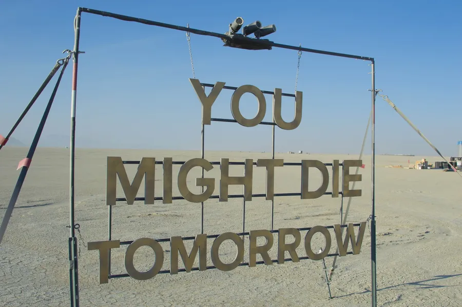 „Ai putea muri mâine” – mesaj afișat la Burning Man. Sursa: Profimedia