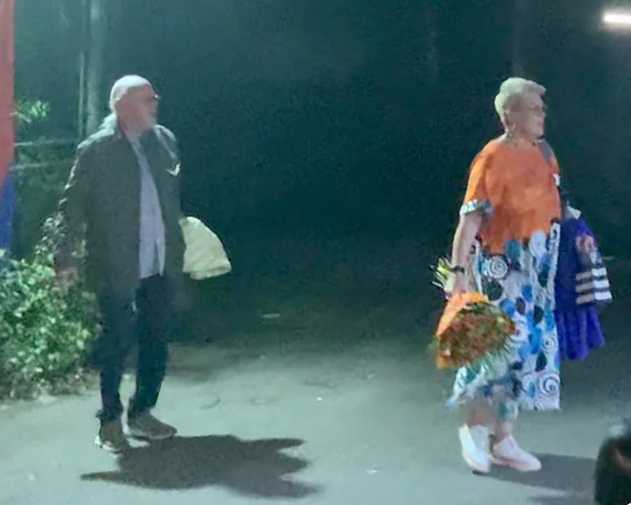Îmbrăcați elegant, ea într-o rochie vaporoasă și foarte colorată și cu un buchet de flori în mână, iar el cu o cămașă și în carouri, au pășit ușor timizi în zona restaurantului Biutiful. După ce au cerut indicații unei persoane întâlnită în apropiere, cei doi artiști s-au îndreptat cu pași repezi către petrecere.