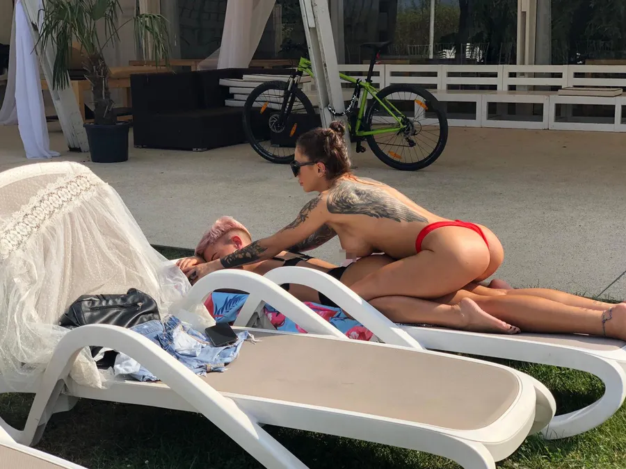 La scurt timp după momentele din apă, cele două tinere au demonstrat că sunt dezinhibate și au trecut la „nivelul următor”. BbyCriss a renunțat la sutien și și-a expus formele răvășitoare în toată splendoarea.