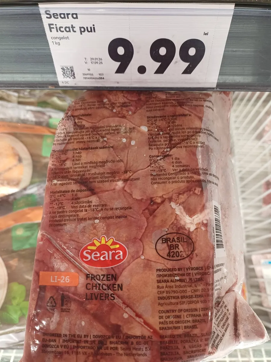 La prima vedere, ficatul congelat din Brazilia pare alegerea logică, pentru că prețul este greu de neglijat, diferența față de produsul românesc fiind de peste 14 lei pe kilogram, lucru care contează enorm pentru o familie cu venituri mici, sufocată de taxe. Totuși, dincolo de preț trebuie să ținem cont de modul în care a fost transportat alimentul, de felul în care a fost crescută pasărea respectivă. Practic, plătești mai puțin la casă, dar accepți un produs procesat într-un sistem asupra căruia nu ai niciun control real. Varianta din Polonia e de preferat, dar vorbim tot de un aliment congelat.