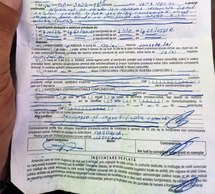 Bărbatul și-a făcut experiența publică pe un grup Facebook, acolo unde a publicat și o fotografie cu amenda primită din partea autorităților. În dreptul postării, turistul a scris și un mesaj, dând astfel de înțeles că nu are habar despre faptul că a încălcat legea. NU RATA: Ce făcea Dana Marijuana în containerul din Vama Veche, unde locuia fiica ei. Dezvăluiri din dosar