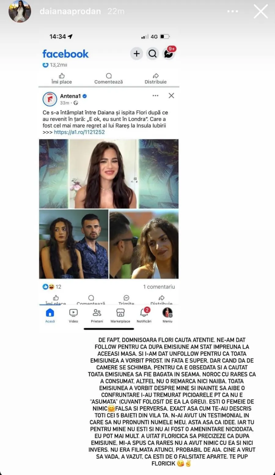 Amicii lui Rareș susțin că Daiana ar fi început să fie din nou foarte autoritară și să nu mai aibă deloc încredere în iubitul său, lucru care ar fi declanșat mai multe discuții în contradictoriu între cei doi. Ca să nu credeți că vorbim fără rost, vă arătăm și dovezi conform cărora chiar Daiana a confirmat despărțirea de fostul, pe Tik Tok.