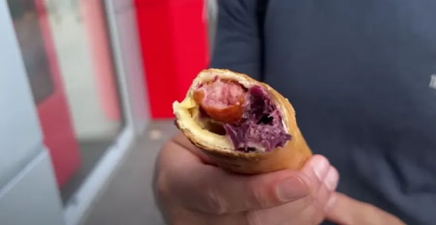 Dacă ”pâinea cu parmezan” nu prea i-a convins, cei doi turiști au decis să încerce și Luca picant, preparat asemănător hotdog-ului american. Un cârnăcior picant cu puțin sos de maioneză și varză roșie învelit într-un aluat de covrig rumenit bine în cuptor. Gustarea i-a cucerit definitiv.