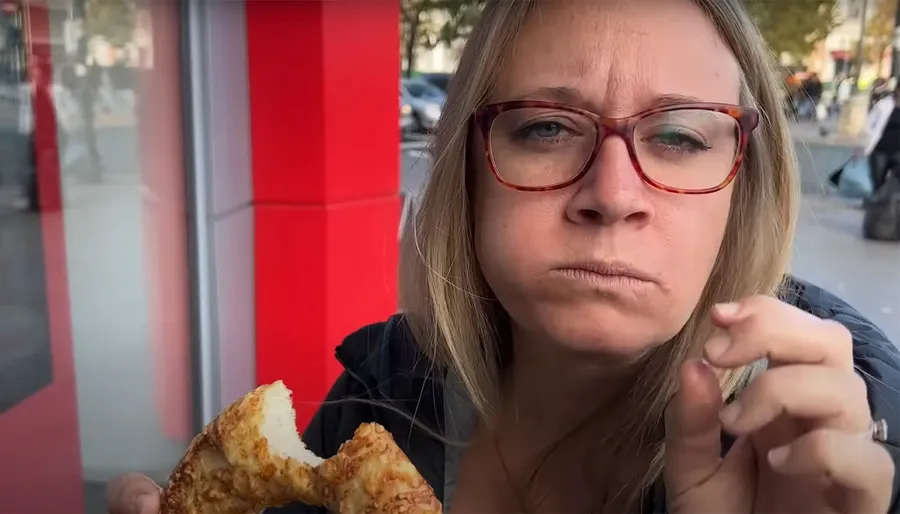 ”Cașcavalul este doar pe exterior. Am crezut că este umplut. Este un fel de pâine cu parmezan în formă de cerc”, a spus americanca.