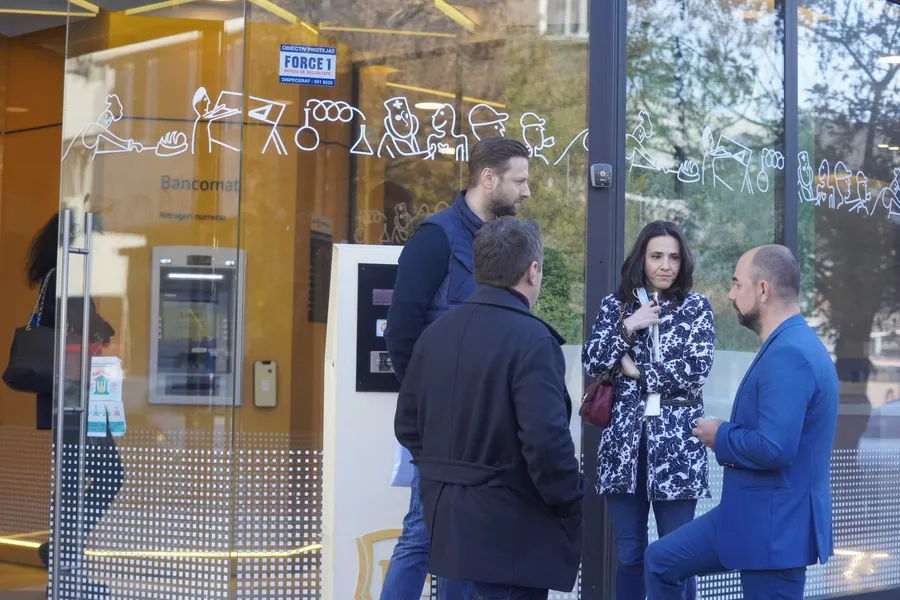 În centrul Capitalei aveau treabă și, poate de aceea, au și mărit pașii. La Banca Transilvania s-au grăbit să ajungă, unde s-au întâlnit cu un cunoscut, soțul Irinei Mohora, fosta prezentatoare de la Loto, Marius Badea, un cunoscut om de afaceri.