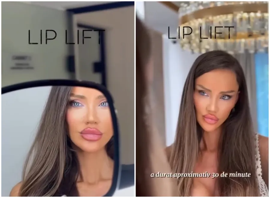 Așa cum spuneam, în urmă cu o lună, Bianca Drăgușanu s-a lăsat, din nou, pe mâna medicului estetician. Aceasta a apelat la o procedură de Lip Lift. Un lift de buze este o procedură chirurgicală cosmetică destinată îmbunătățirii aspectului buzelor, prin scurtarea distanței dintre nas și buza superioară. Aceasta ridică buza superioară și expune mai mult din roșul buzelor, creând un aspect mai plin și mai întinerit.