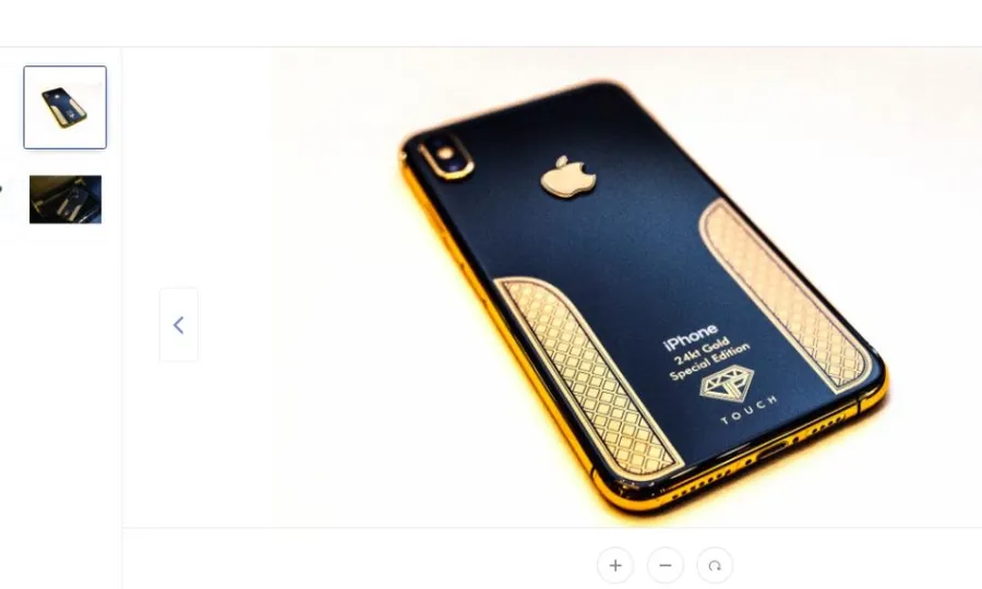Pe eMag mai pot fi găsite şi alte telefoane de lux cum ar fi acest iPhone XS, de 512 GB, placat cu aur de 24 de carate şi cu un exterior din piele de rechin. Pentru acesta, preţul este considerabil mai mare şi anume 10.500 de lei. Dar, ce mai contează câteva mii de lei în plus când vrei să demonstrezi tuturor că eşti „şmecher adevărat” şi că îţi permiţi orice?