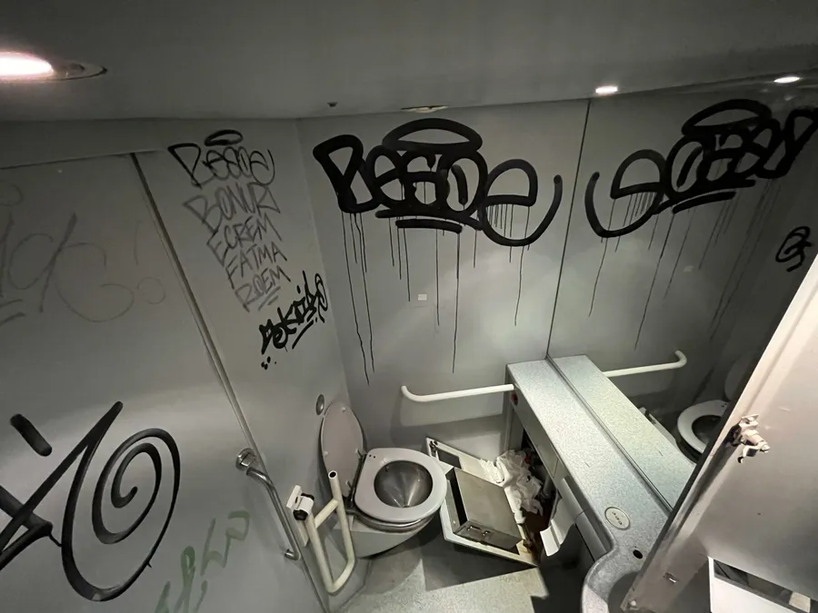 Mulți dintre români trag aer adânc în piept atunci când trebuie să meargă cu trenul și mai ales atunci când trebuie să folosească toaleta. Condițiile pe care CFR Călători le oferă sunt adesea aspru criticate de către români, iar cele de pe ruta București Nord – Aeroport Internațional Henri Coandă sunt criticate și de către turiștii ce ajung în România. Iată cum arată o toaletă de tren de pe această rută.