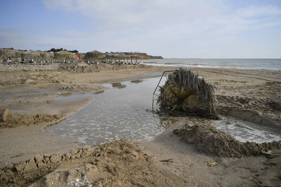 Duminică dimineață, Vama Veche „s-a trezit” într-un peisaj dezolant, complet transformat după potopul care a lovit stațiunea în ultimele 48 de ore. Plaja vibrantă, plină de viață și turiști, acum arată ca un câmp de luptă abandonat, măturat de forța naturii. Ciclonul format în Marea Neagră a lăsat în urmă un adevărat haos, iar imaginile surprinse de o dronă oferă o priveliște tulburătoare a distrugerilor.