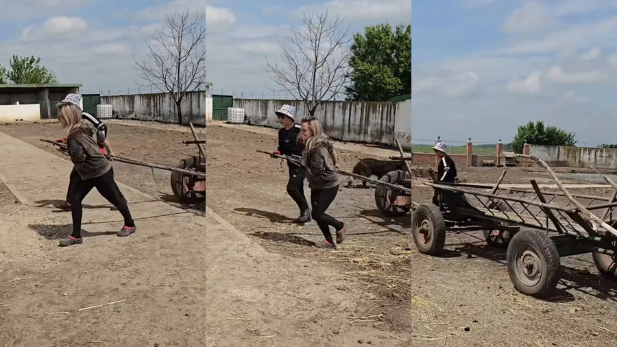 Videoclipurile încărcate pe o rețea de socializare nu mai au nevoie de nicio prezntare. Într-unul dintre ele, femeia s-a lăsat filmată în timp ce – împreună cu unul dintre copiii ei – trăgea de zor de o căruță. Îmbrăcată într-un trening, cu papuci, accesorizată cu ochelari de soare și pe ritmurile melodiei lui Tzancă Uraganu, fosta concurentă de la Chefi la cuțite a făcut furori pe social media.