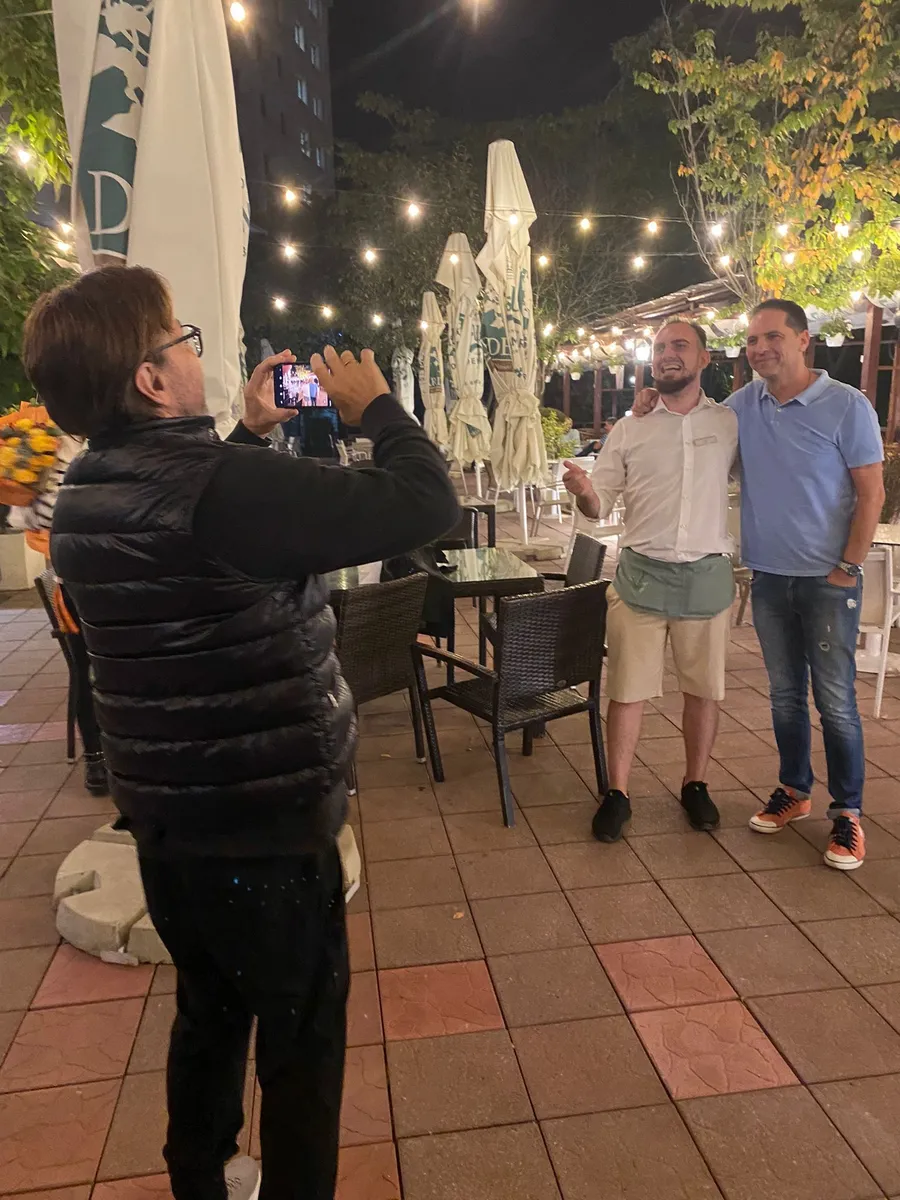 Cei doi s-au retras la restaurantul hotelului unde era cazat artistul, iar acolo au luat masa, dar s-au și întins la ”vorbăraie”. Și fiecare dintre ei a avut multe de spus. Dar, atunci când au decis că e timpul retragerii, chelnerul i-a atacat! A vrut, musai, o poză. Aici, Meola a rămas puțin…interzis. Asta pentru că nu l-a el s-a repezit omul care-i servise.