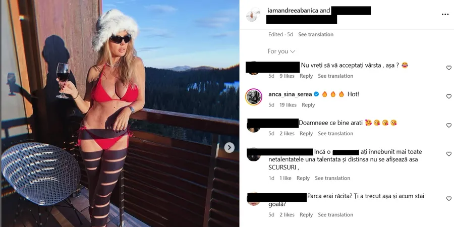 Comentariile de la fotografia postată de Andreea Bănică / Foto: Instagram