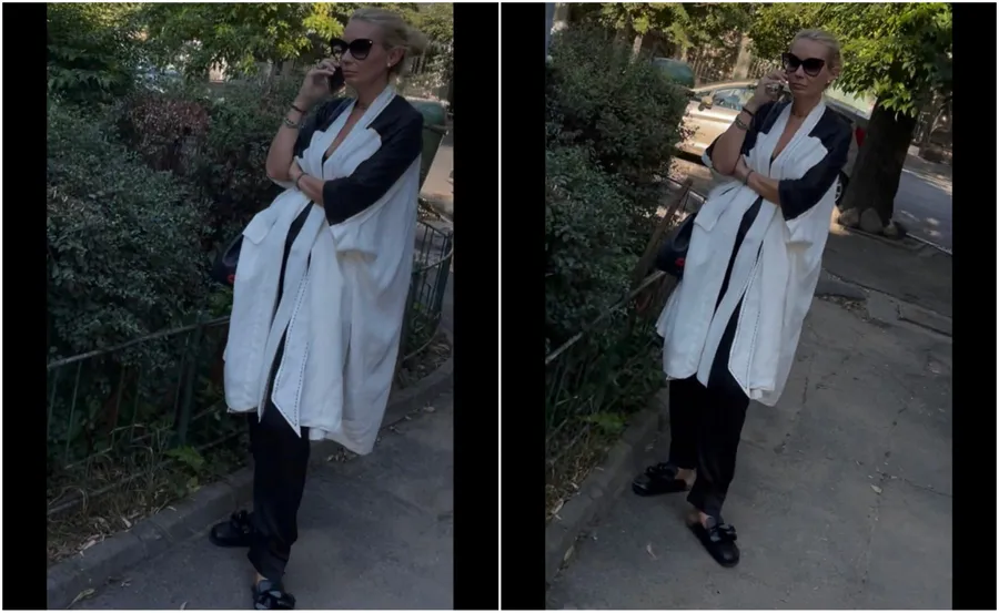 Îmbrăcată într-o pereche de pantaloni negri, lungi, peste care și-a pus o vestă oversized, Daciana Sârbu a putut fi, cu greu, recunoscută. Soția lui Victor Ponta își menține silueta care a consacrat-o, chiar dacă a avut două sarcini și a trecut de 40 de ani.