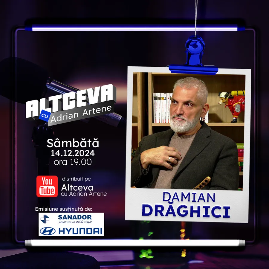 Așadar, te invit să programezi acum un memento pe telefonul tău care să te avertizeze că sâmbătă, 14 decembrie, începând cu ora 19:00, ești invitat să urmărești un nou episod al podcastului „Altceva cu Adrian Artene”, o ediție eveniment amprentată puternic de Damian Drăghici.