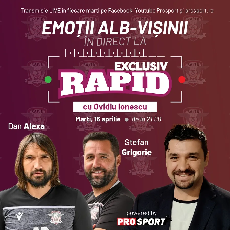Vă așteptăm la ora 21:00 la „EXCLUSIV RAPID” pe Facebook si YouTube – ProSport, dar și pe prosport.ro