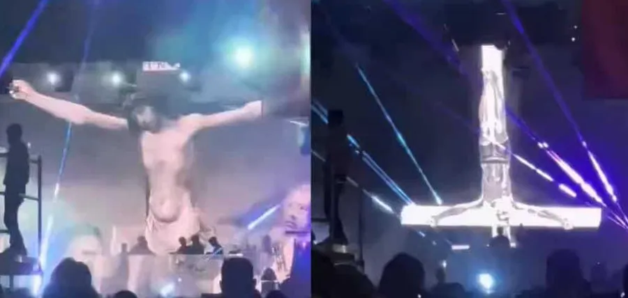 Este vorba despre cântărețul Ian, care – în timp ce performa pe scena Alchemy – a avut drept grafică mai multe imagini cu o cruce pe care era răstignit Iisus Hristos, dar și câteva cadre cu o femeie care linge o cruce. Imaginile au stârnit un val de reacții dure în mediul online, cei mai mulți dintre utilizatori acuzându-l pe Ian de blasfemie.