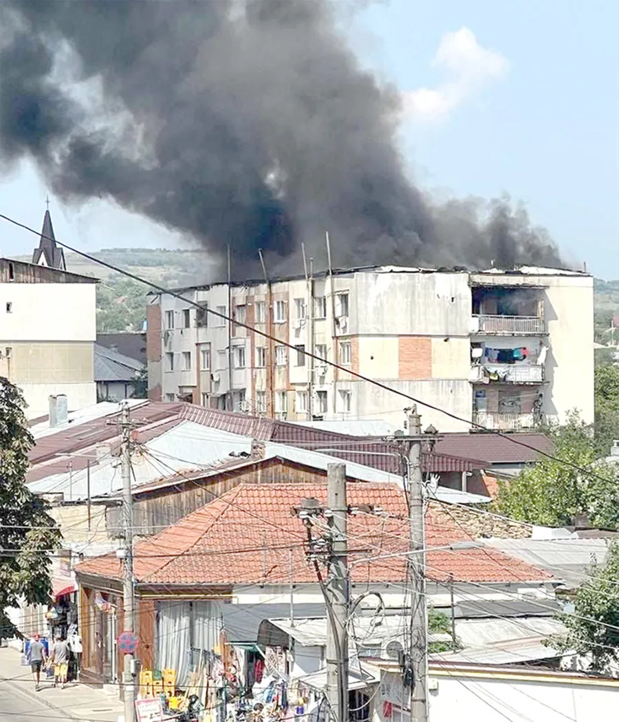 Incendiul a izbucnit la nivelul ultimului etaj al unui bloc de apartamente din Huși / foto: Vremea Nouă