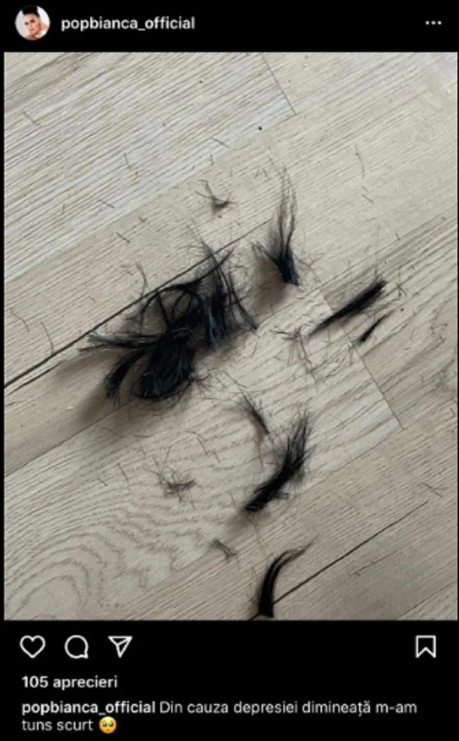 ”Din cauza depresiei de dimineață m-am tuns scurt”, a scris Bianca Pop pe Instagram.