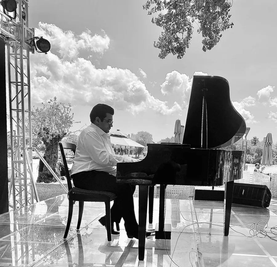 Alex Pădureanu cântă la pian/ Sursa foto: Facebook