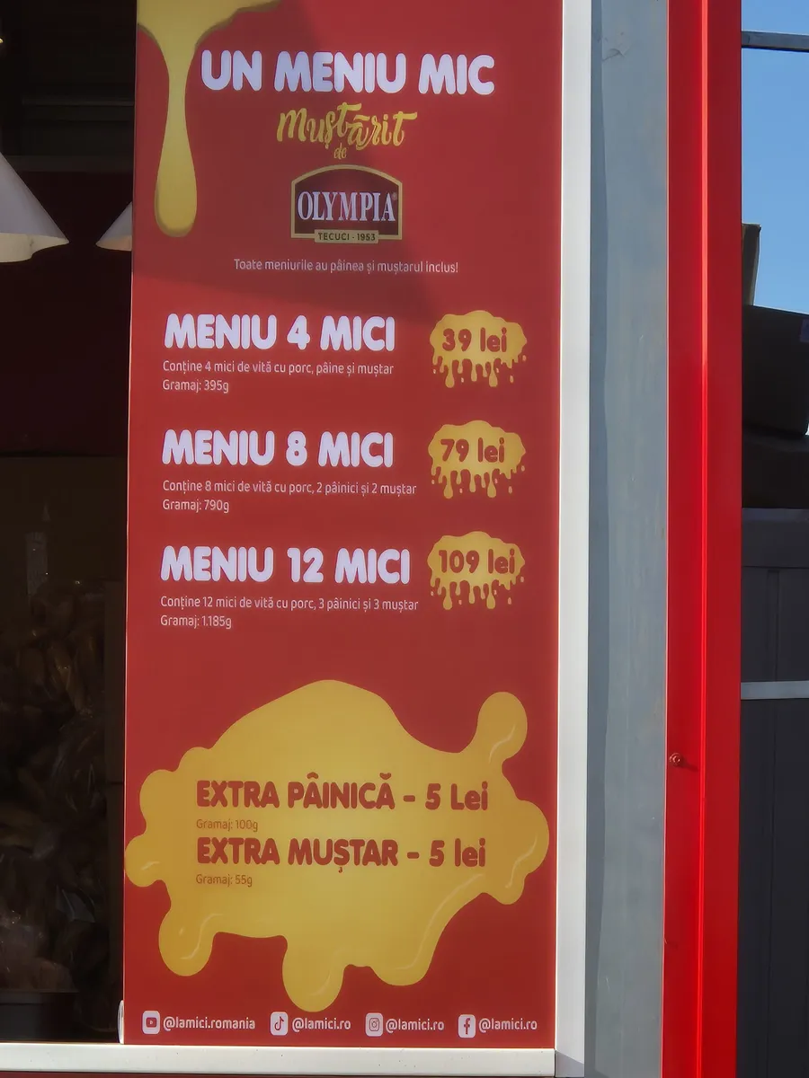 Iar cei care au gașcă mare își pot potoli foamea cu un meniu de 12 mici, pentru care trebui să plătească 109 lei. Iar dacă le mai trebuie extra pâine sau extra muștar trebuie să mai scoată din buzunar încă 5 lei.