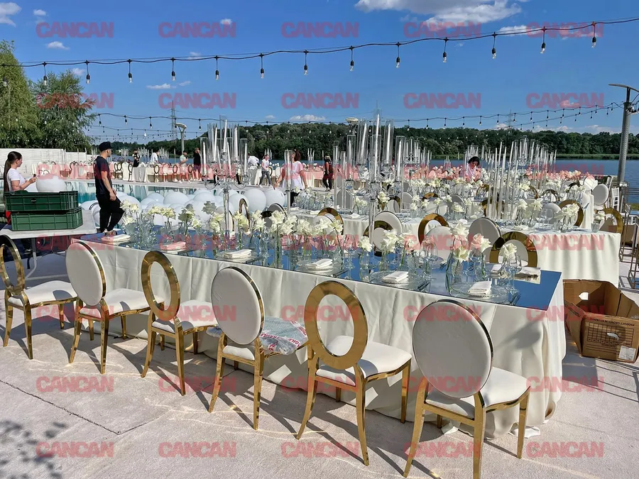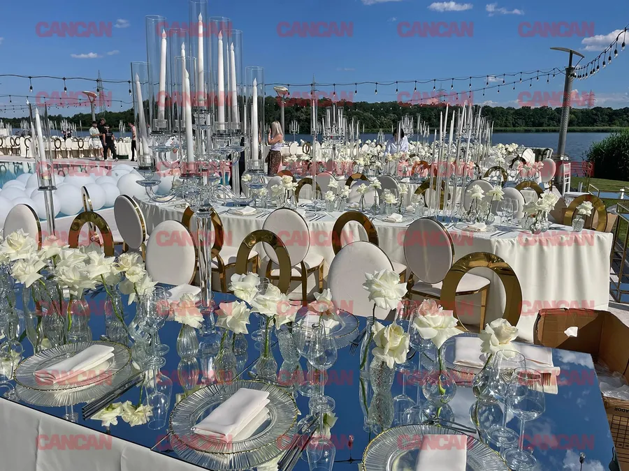 Pentru nunta lui Pepe cu Yasmine au fost alese o multitudine de elemente albe. Printre acestea se numără și trandafirii albi, expuși în mici vaze pe mesele invitaților. Desigur, pe mese „tronează” și candelabre speciale, cu lumânări albe înconjurate de sticlă.