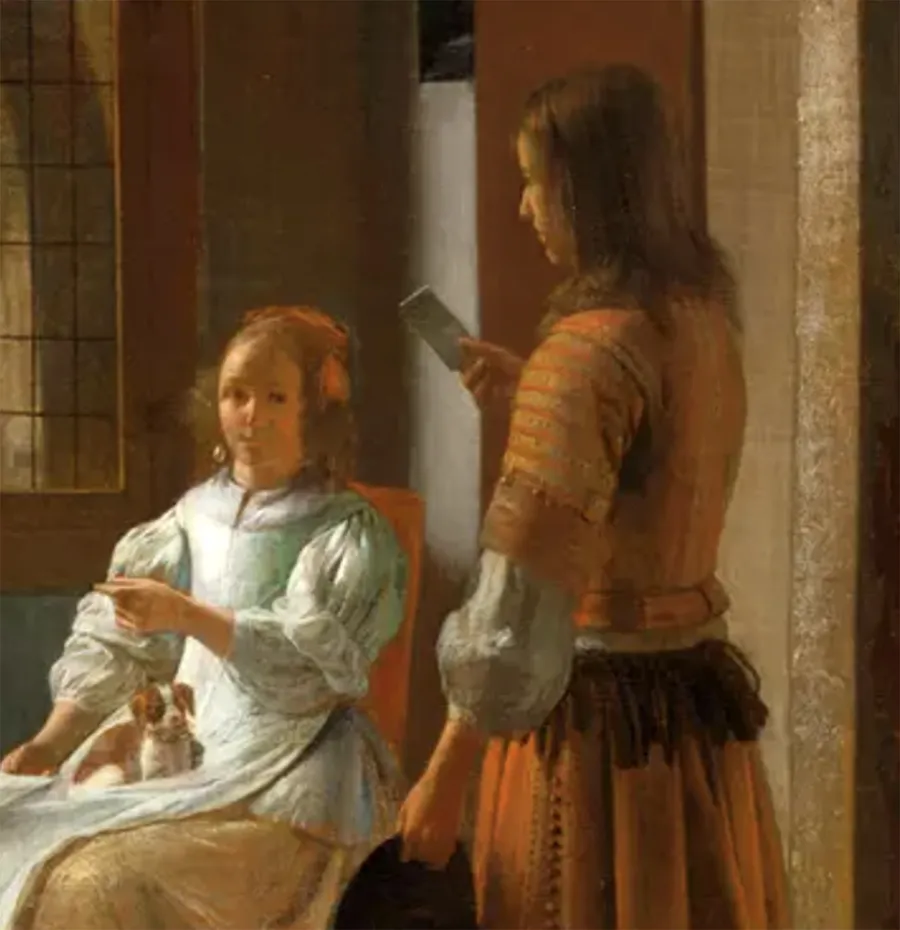 Cu toate că tabloul a stârnit atât de multe controverse, explicația este una destul de simplă. Nu vorbim despre călătorii în timp, ci doar despre o coincidență. Mai exact, în tabloul său, Pieter de Hooch a ilustrat o femeie ce primește o scrisoare de la mesager. Deci presupusul iPhone din imagine nu este altceva decât un plic care conține o scrisoare.