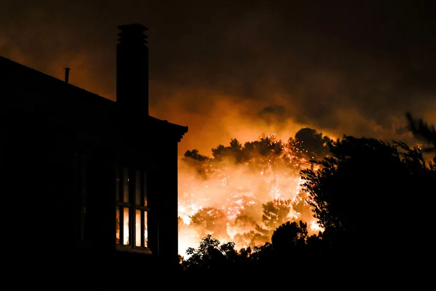 În Chios, rafalele de vânt au alimentat extinderea incendiilor, care au provocat întreruperi de curent și au forțat autoritățile să decreteze evacuarea locuitorilor, conform REUTERS.