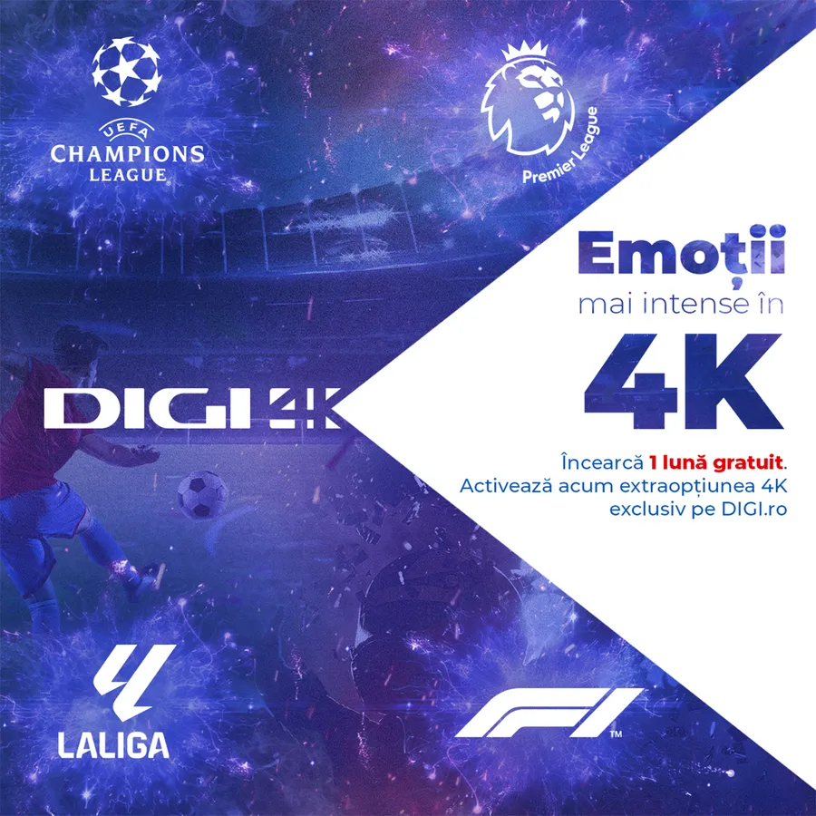 A venit o nouă veste din partea Digi RCS-RDS, gigantul de telecomunicații cu milioane de abonați. De data aceasta, clienții pot beneficia de o extraopțiune care costă doar 5 lei pe lună. Este vorba despre extraopțiunea 4K prin intermediul căreia abonații pot avea parte de o experiență îmbunătățită, când vine vorba despre privitul meciurilor și a curselor de Formula 1.