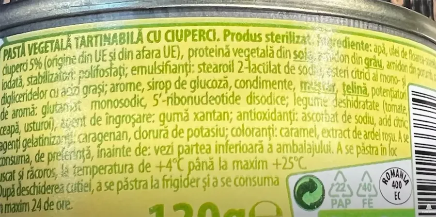 Din ce este făcut pateul vegetal cu ciuperci de la Bucegi? Are peste 24 de ingrediente, iar eticheta este lungă ca un manual de chimie. Nu doar în perioada postului, consumatorii sunt sfătuiți să citească atent eticheta produselor pentru a putea cunoaște exact ceea ce mănâncă astfel să nu fie induși în eroare sau păcăliți.
