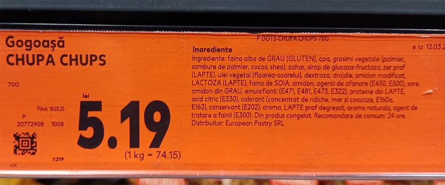 Pe etichetă se mai precizează că gogoașa Chupa Chups provine dintr-un produs congelat. De asemenea, producătorii le recomandă consumatorilor să o mănânce în maximul 24 de ore.