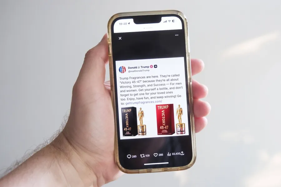 „Parfumurile Trump au sosit. Acestea se numesc Victory 45-47 deoarece se concentrează pe victorie, putere și succes atât pentru bărbați, cât și pentru femei”, explică Donald Trump.