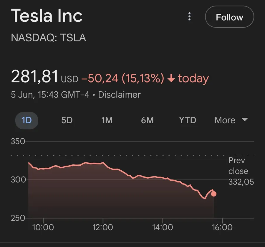 Războiul dintre cei doi pare departe de a se încheia, iar evoluția lui ar putea avea efecte nu doar în sfera publică, ci și în culisele Casei Albe. Mai mult decât atât, conflictul celor doi începe să aibă și urmări. Joi, 5 iunie 2025, acțiunile Tesla au scăzut cu 15% și este posibil să continue să se prăbușească. Pe de cealaltă parte, și președintele SUA poate să piardă teren politic.
