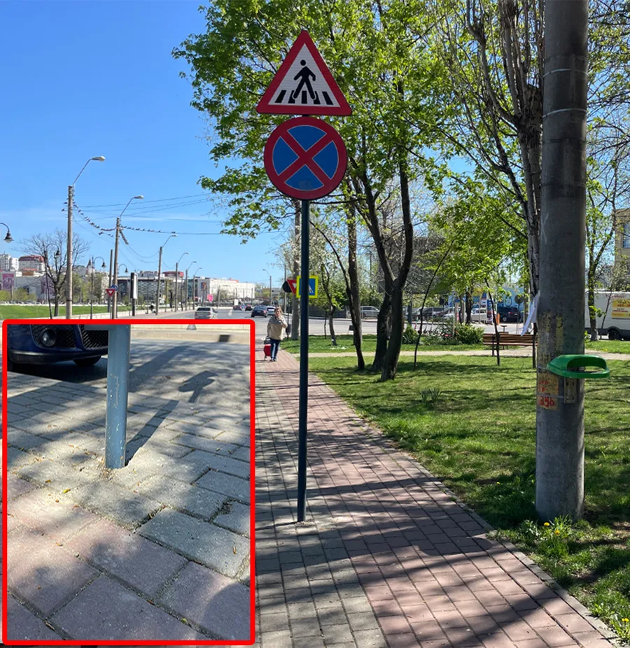 Indicatorul rutier a fost amplasat în mijlocul trotuarului/ Sursa foto: BZI