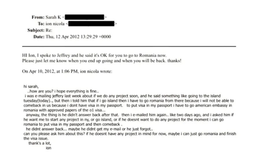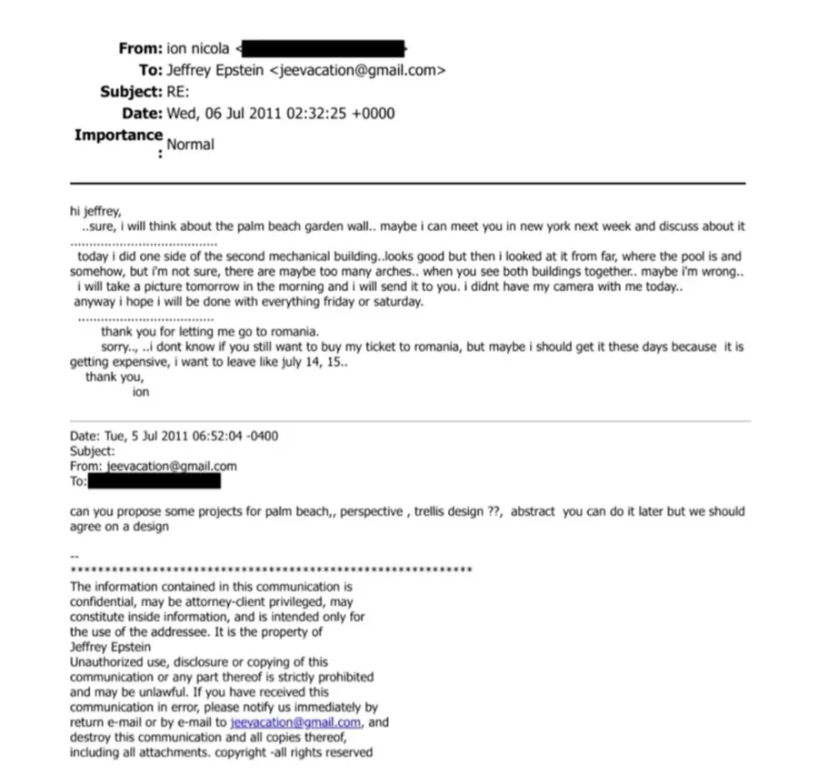 Într-un alt mesaj, din 2011, același Ion îi scrie direct lui Jefrrey Epstein, făcând referire la o întâlnire în New York, detalii despre o plajă cu palmieri și îi mulțumește pentru că i-a permis să plece în România.
