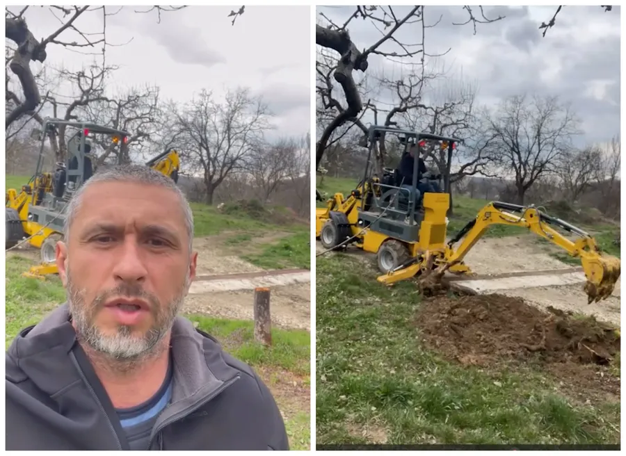 „A trebuit să tai câțiva pomi foarte, foarte bolnavi și am cumpărat în schimb alții pe care o să îi plantez. Trebuie să scot câteva rădăcini și din fericire am buldozer”, a spus Dragoș Bucur, în mediul online.